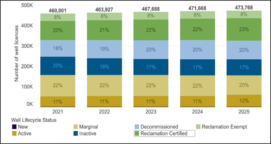 - As of November 30, 2024, the AER reported 471,363 licensed wells in the province, representing about 9.5% of the global total.