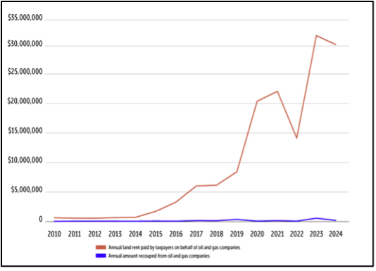 Figure 4: Land Rent Paid Annually by the Alberta Government on behalf of Delinquent Oil and Gas Companies (Source: The Narwhal)