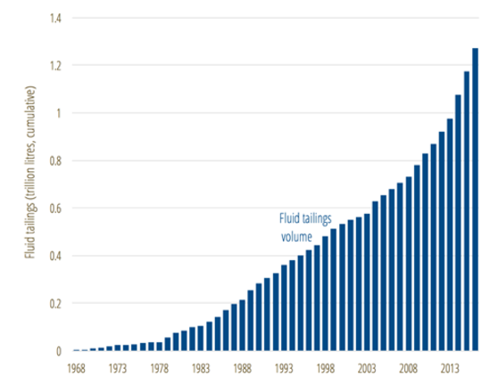 Figure 1: Fluid Tailing Ponds Volume Growth in Alberta since 1968